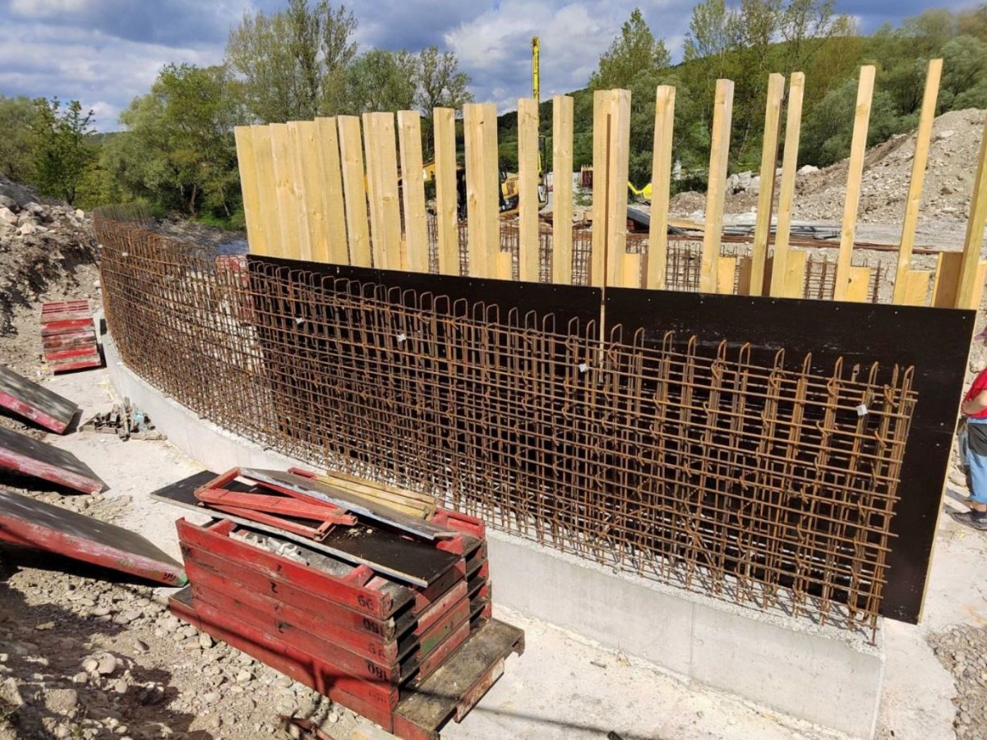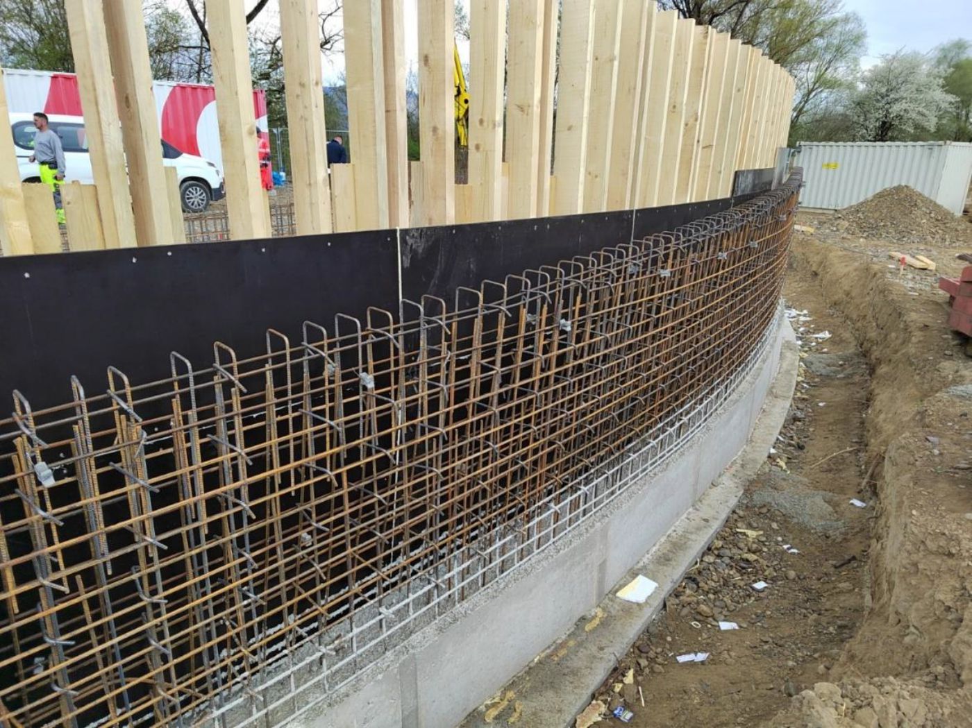 – Osadenie výstuže a betonáž nájazdových múrov.