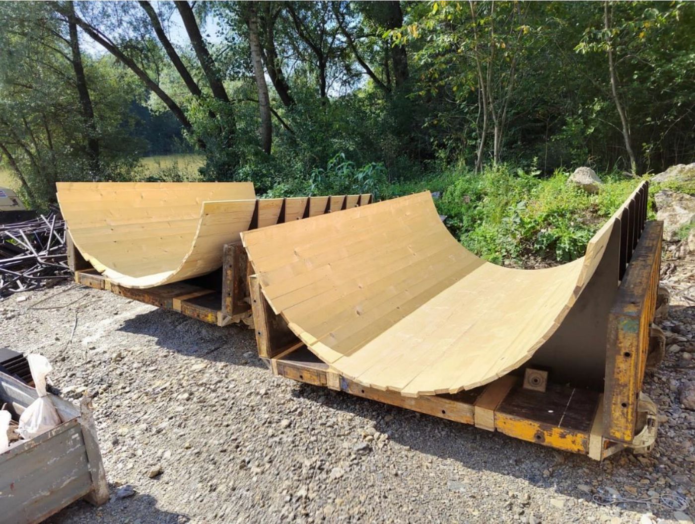 – Zhotovenie a montáž debnenia nájazdových oporných múrov.