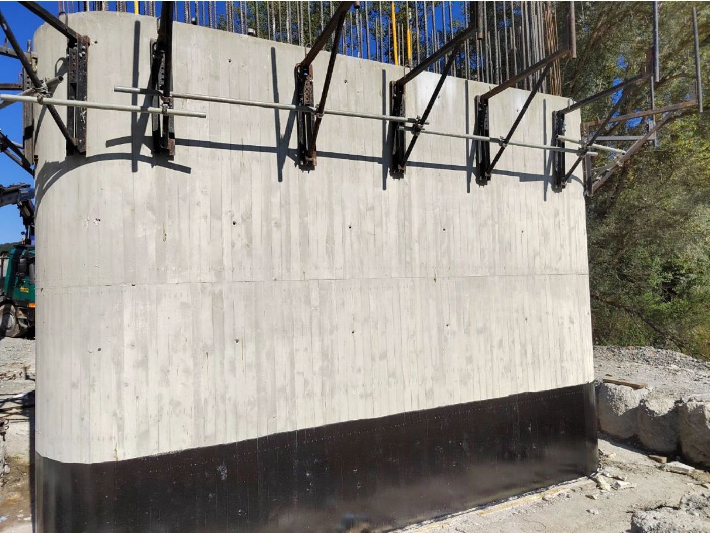 – Zhotovenie a montáž debnenia hlavného nosného piliera.
